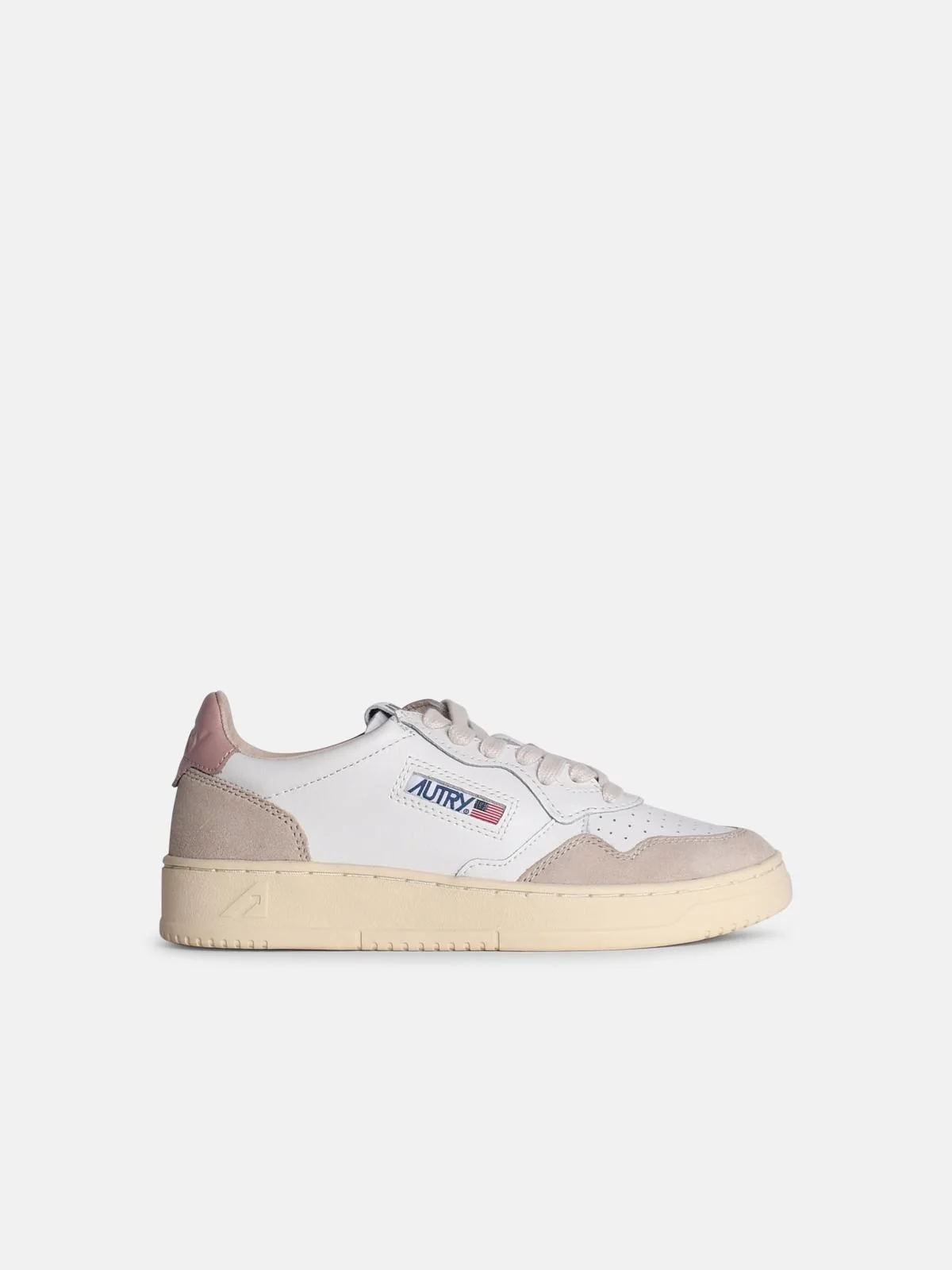 MEDALIST LOW SNEAKERS IN WHITE AND POWDER LEATHER AND BEIGE SUEDE