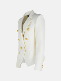 Manufacture code: FF1SI505WC09 0FA Retail code: FF1SI505WC09 0FA Made of 'Grain de Poudre', Italian tailored collar, structured shoulders, long sleeves, straight cuffs with five buttons, crossed closure, six buttons on the front including five decorative, 'Leone doppia catena buttons' in gold metal, two side flap pockets, interior American pocket with buttons, serge lining, tight fit and tight waistband Main: 100% virgin wool Made in Portugal