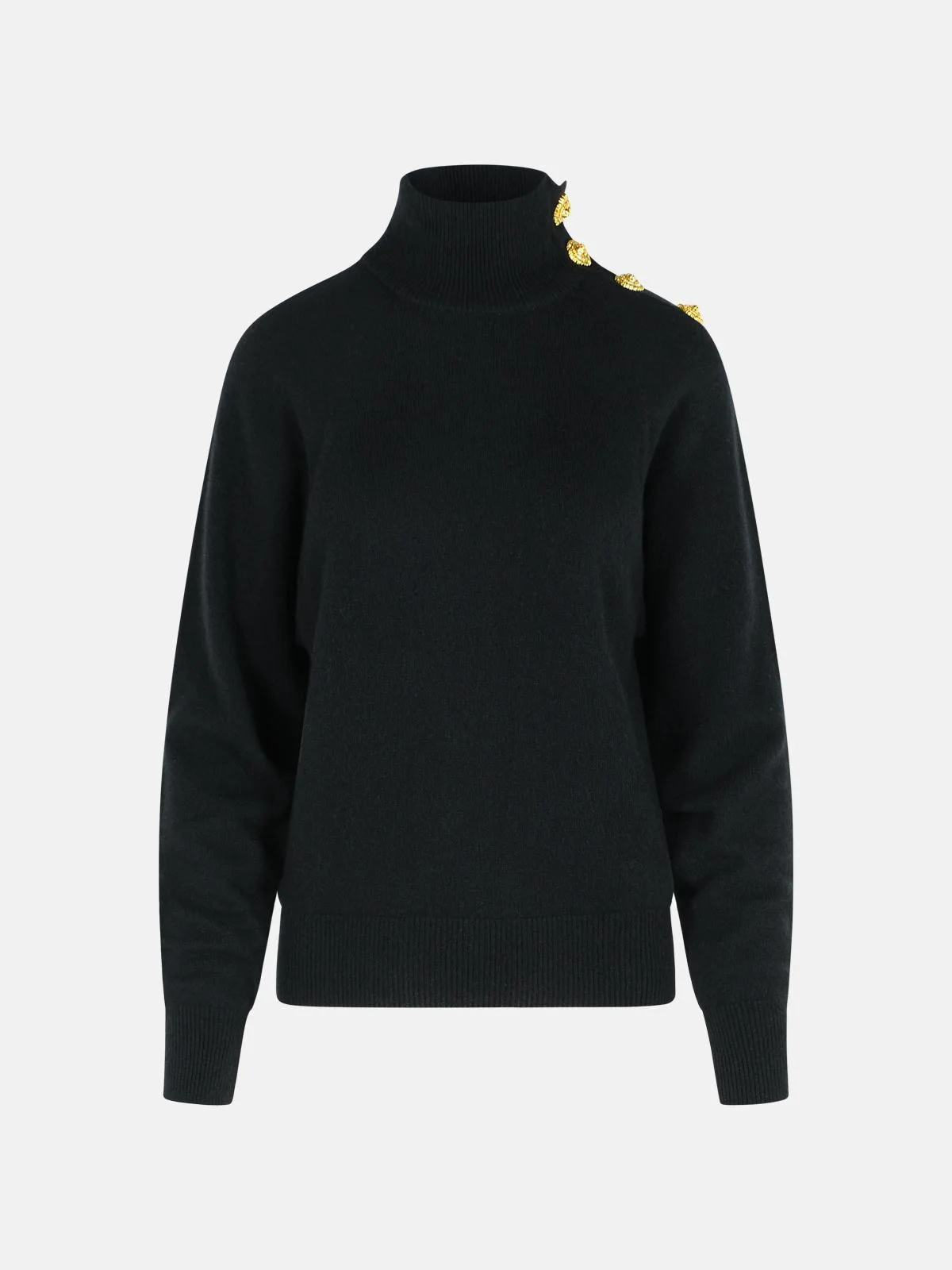 Manufacture code: FF0KF100KI87 0PA Retail code: FF0KF100KI87 0PA Ribbed raised collar, decorative buttons on the shoulder, ribbed hem and cuffs Main: 50% Kashmir, 50% Virgin wool Made in France