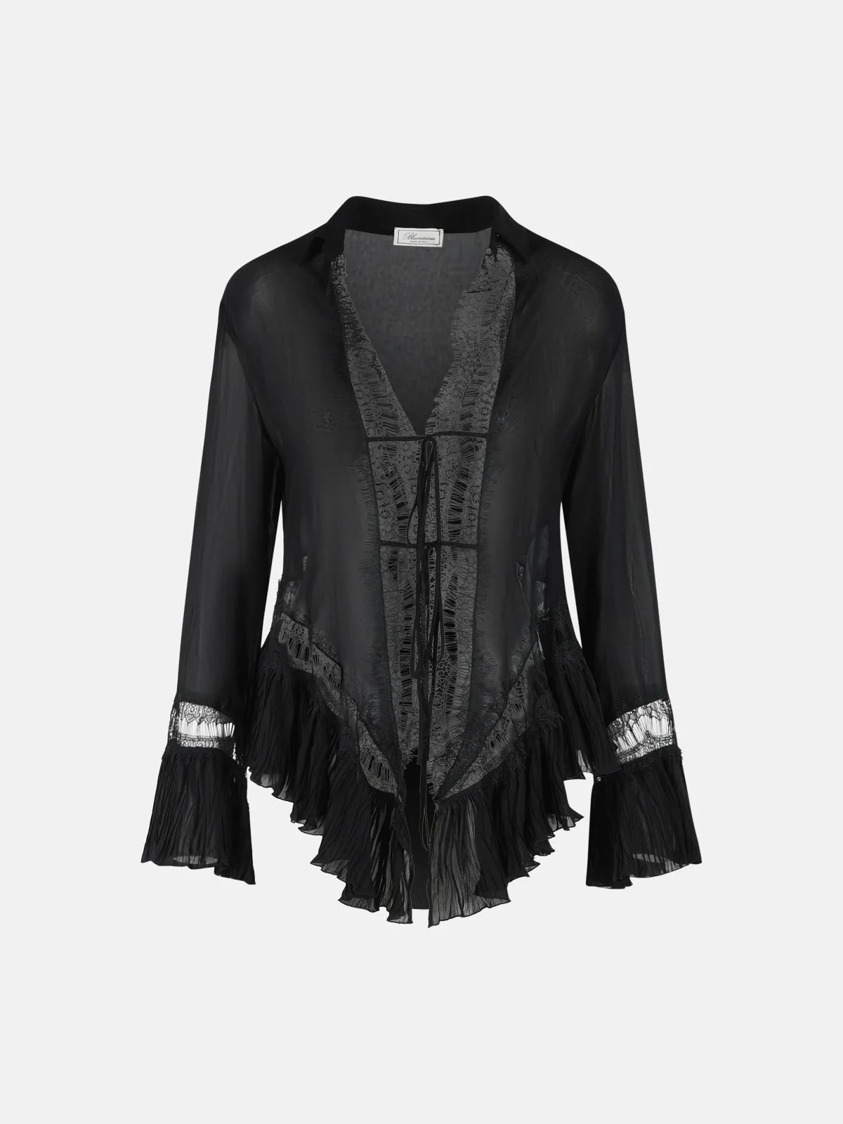 Manufacture code: 2C444A N0990 Retail code: 2C444A N0990 Pointed collar, decorative and structural lace inserts, ruffled cuffs, front lace closure, pleated asymmetrical hem Main: 100% viscose Made in Italy