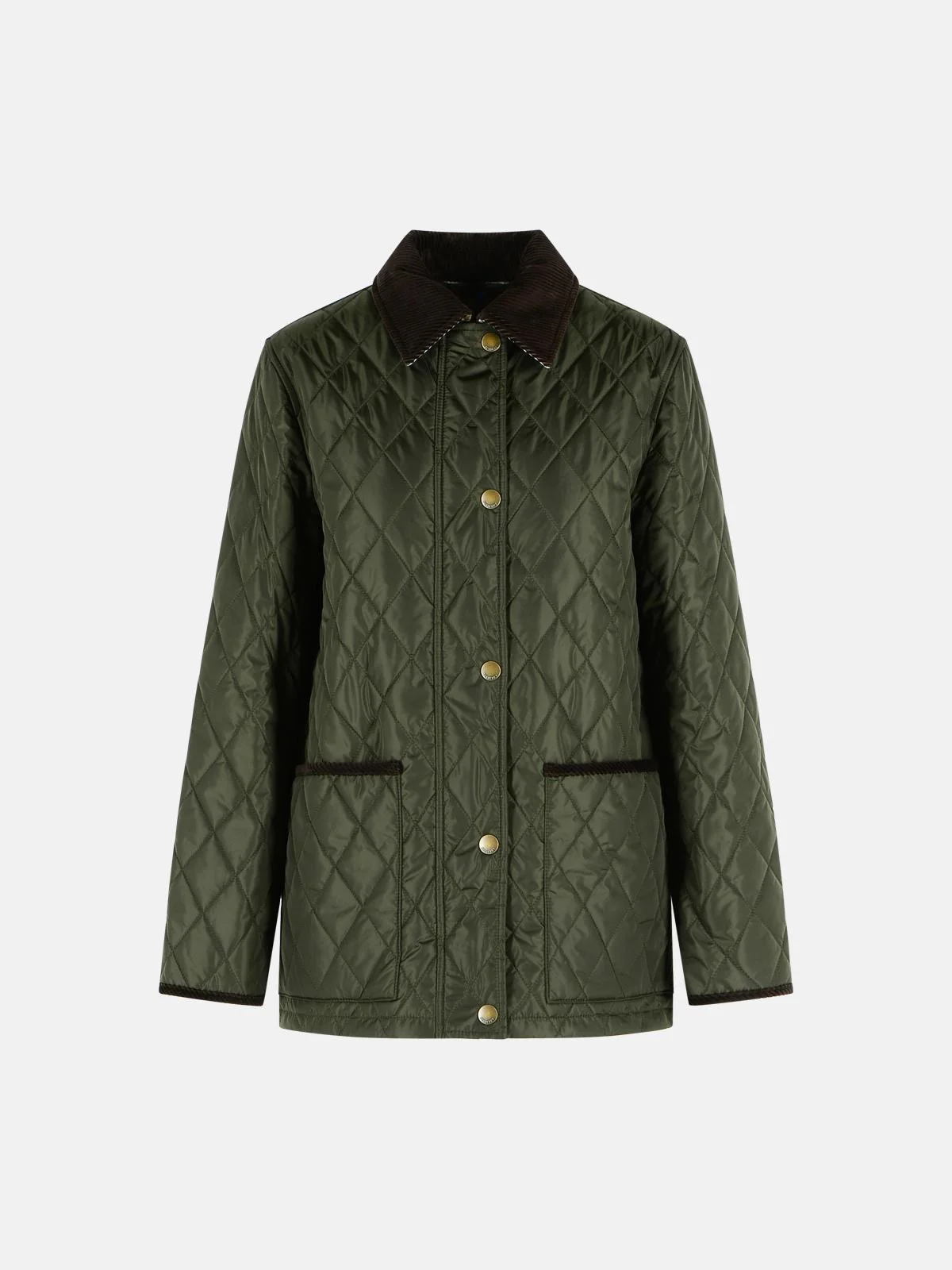 Manufacture code: 8113591 C2491 Retail code: 8113591 C2491 Corduroy covered pointed collar, button and zip closure, diamond quilting, front patch pockets with velvet trimming, velvet cuffs, 'Burberry Check' inner pattern, inner button pocket Main: 100% nylon Made in Thailand