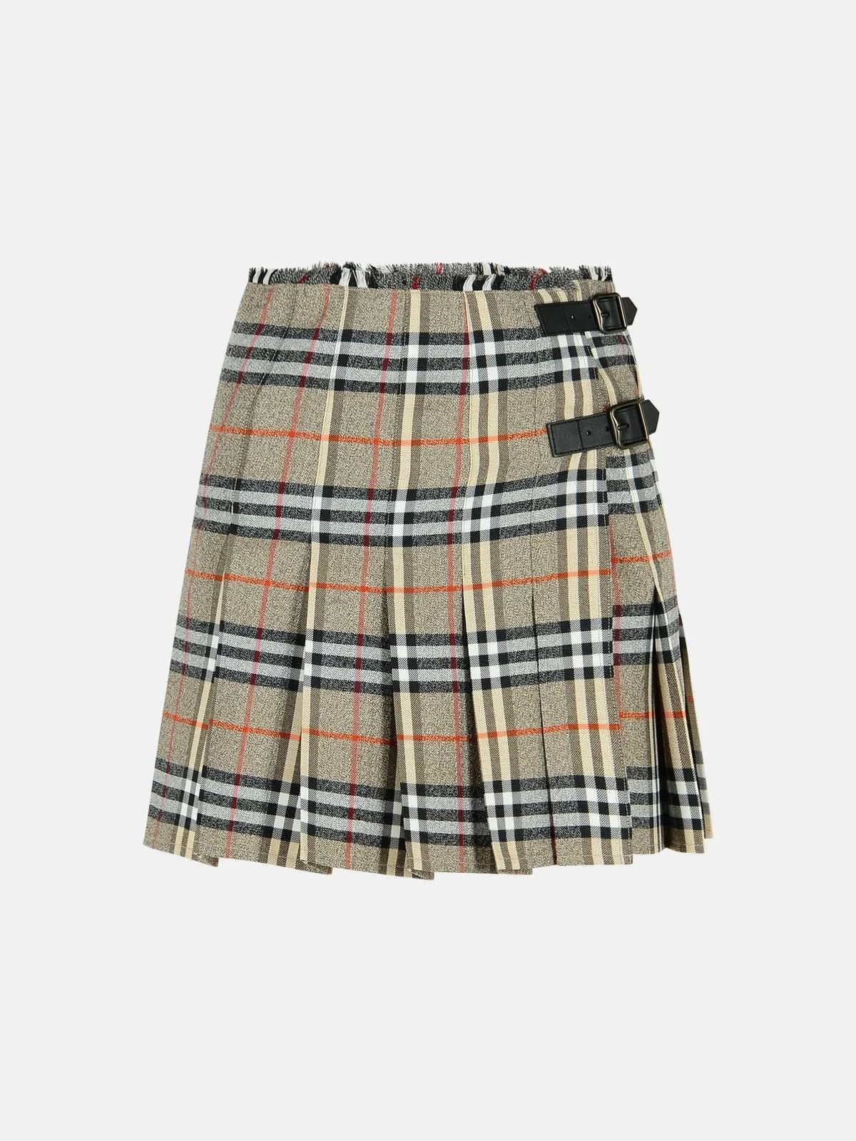 Beige Check Wool 'Mini Kilt' Skirt