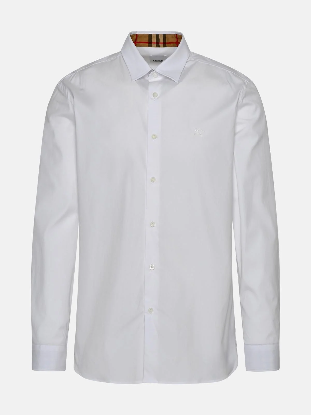 Manufacture code: 8071465 A1464 Retail code: 8071465 A1464 Pointed collar, front button closure, embroidered logo on the chest, and cuffs with two buttons Material: 96% cotton, 4% elastane Made in Tunisia