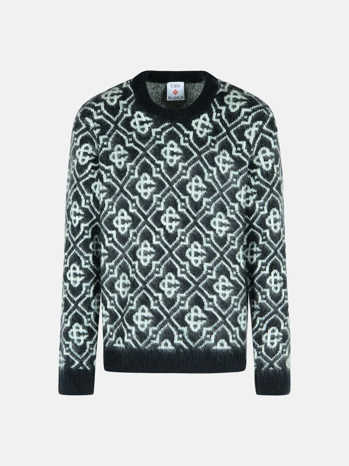 BLACK MOHAIR BLEND MONOGRAMMED SWEATER