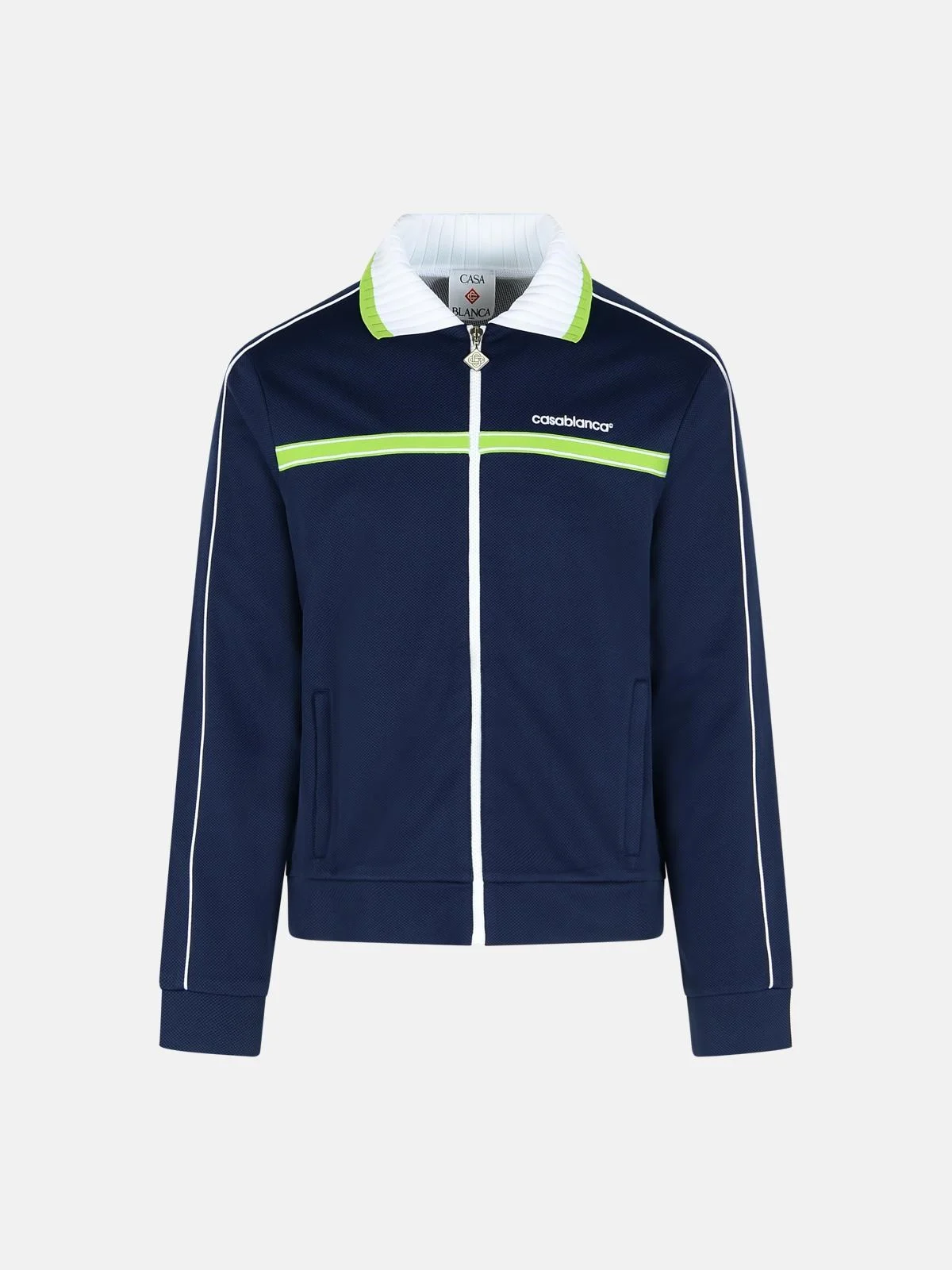 Manufacture code: M-SP26-JTP-391-01 NAVY Retail code: M-SP26-JTP-391-01 NAVY Contrast ribbed collar, green details, zip closure, contrast logo embroidery on the chest, side pockets with invisible zip, technical mesh lining Main: 51% nylon, 46% viscose, 3% elastane Made in Portugal