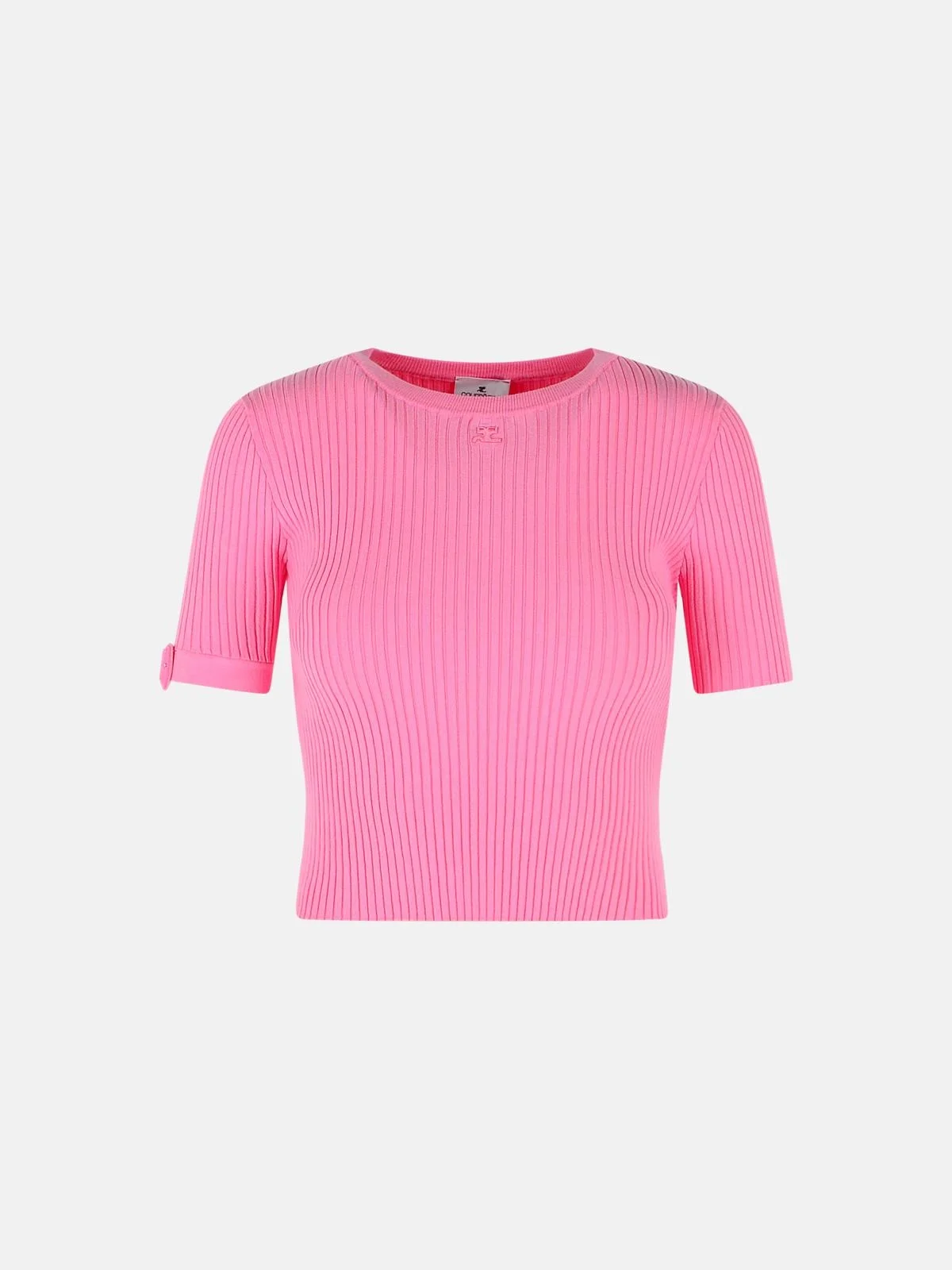 Manufacture code: 126MPU267FI0001 5023 Retail code: 126MPU267FI0001 5023 Ribbed crew neck, all-over ribbed finish, front tone logo, short sleeves, decorative buckle on the cuffs, tight fit Main: 70% viscose, 30% polyester Made in Bulgaria