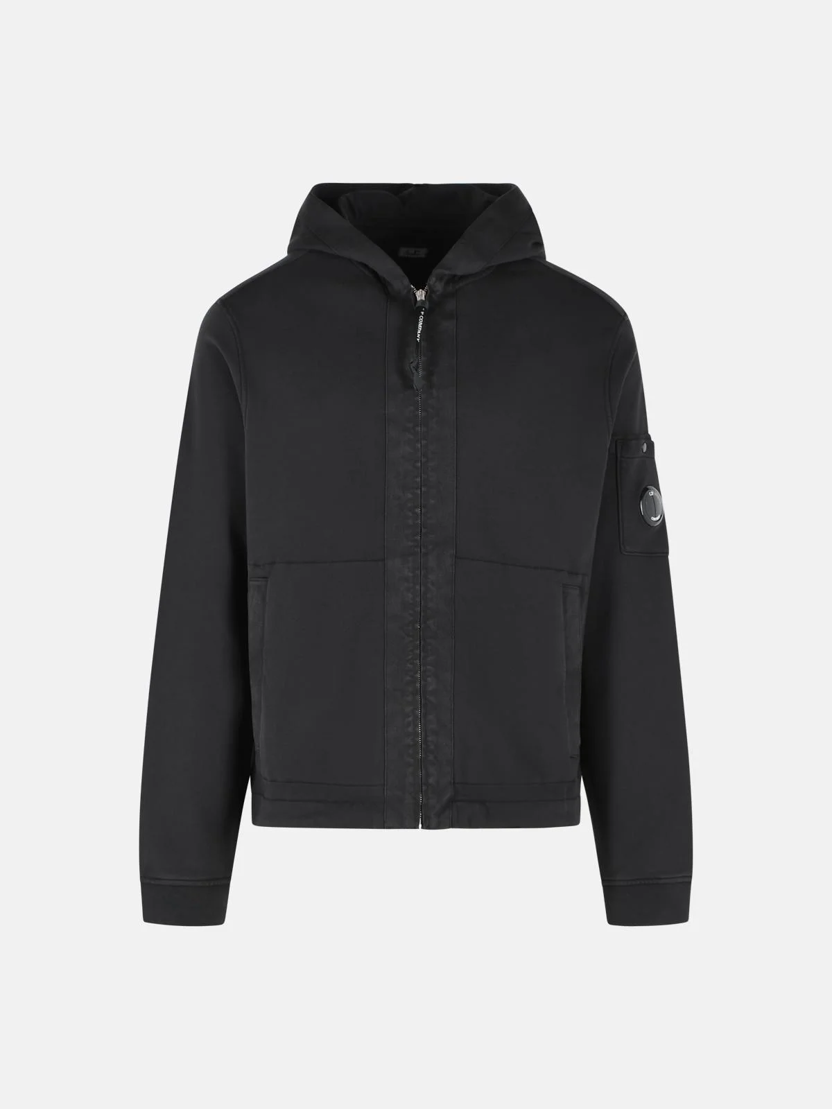 Manufacture code: 20CMSS039A 110044G 999 Retail code: 20CMSS039A 110044G 999 Fixed hood, zip closure, side welt pockets, snap button sleeve pocket and Lens applique, ribbed hem and cuffs