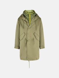 Manufacture code: 19CMOW190A 110089G 652 Retail code: 19CMOW190A 110089G 652 Removable inner down jacket with hood and buttons, hood with 'Lens' applique and external drawstring, full-height zip and front button closure, side pockets with flap and button, external drawstring on the waist, button cuffs, inner pouch pocket, straight hem with drawstring Main: 66% polyester, 34% nylon Made in China