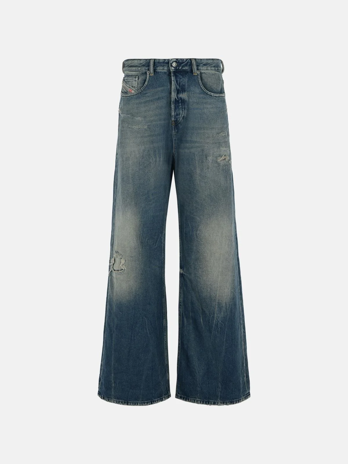 Manufacture code: A06925 09M28 01 Retail code: A06925 09M28 01 Loose design with low waist and wide leg, button closure, five pockets, distressed effect, logo patch on the back Main: 100% cotton Made in Romania