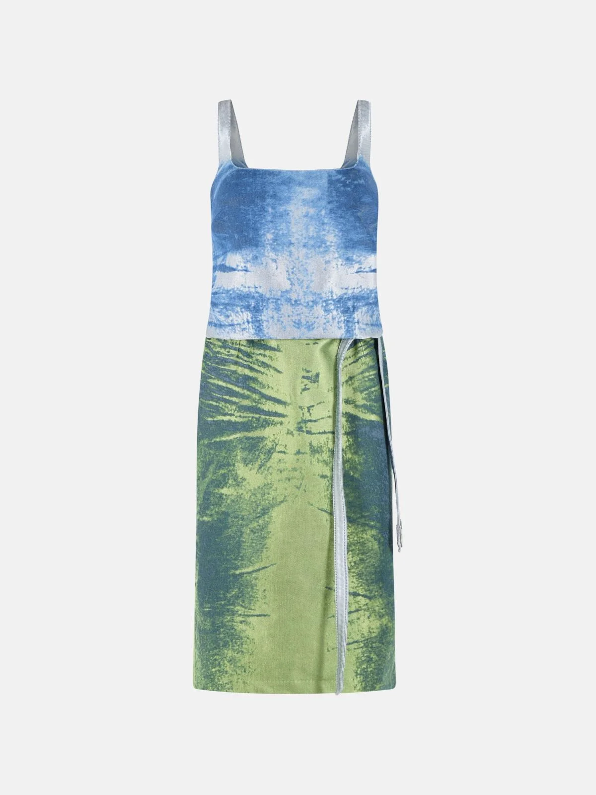 'SANAT' DRESS IN BLUE AND GREEN COTTON BLEND