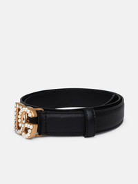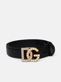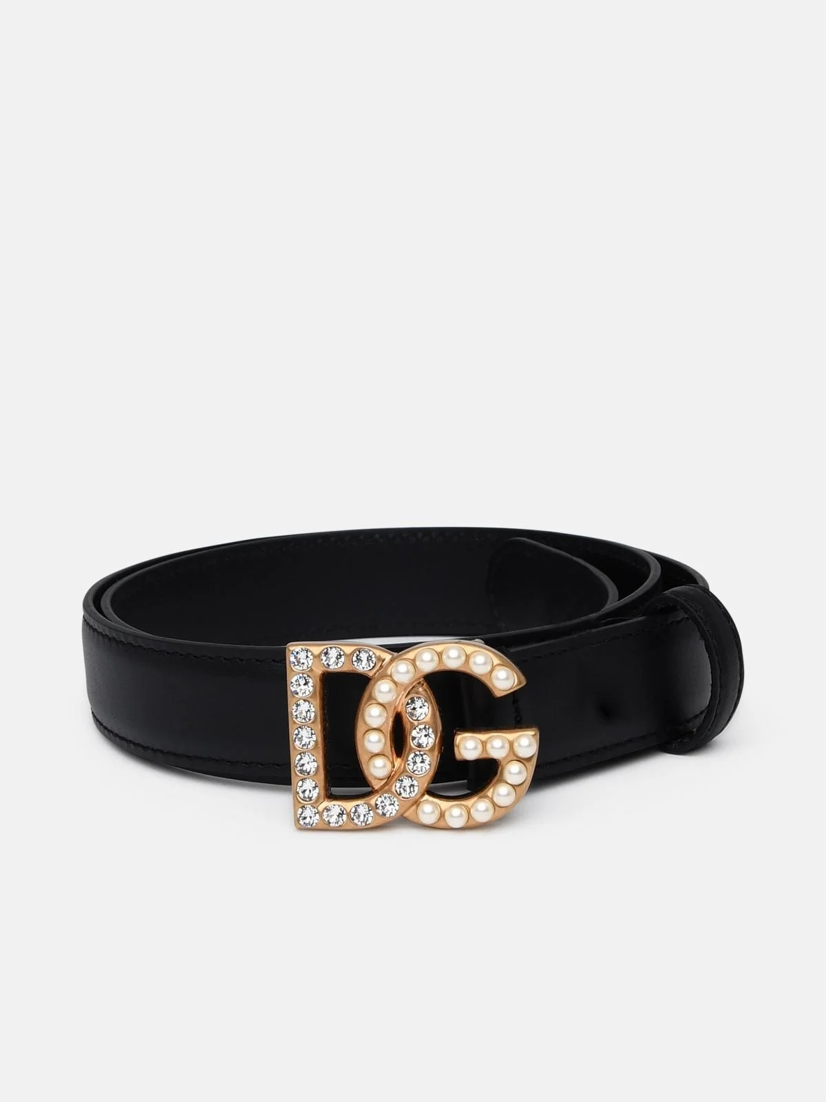 Calfskin belt with DG logo with rhinestones and pearls