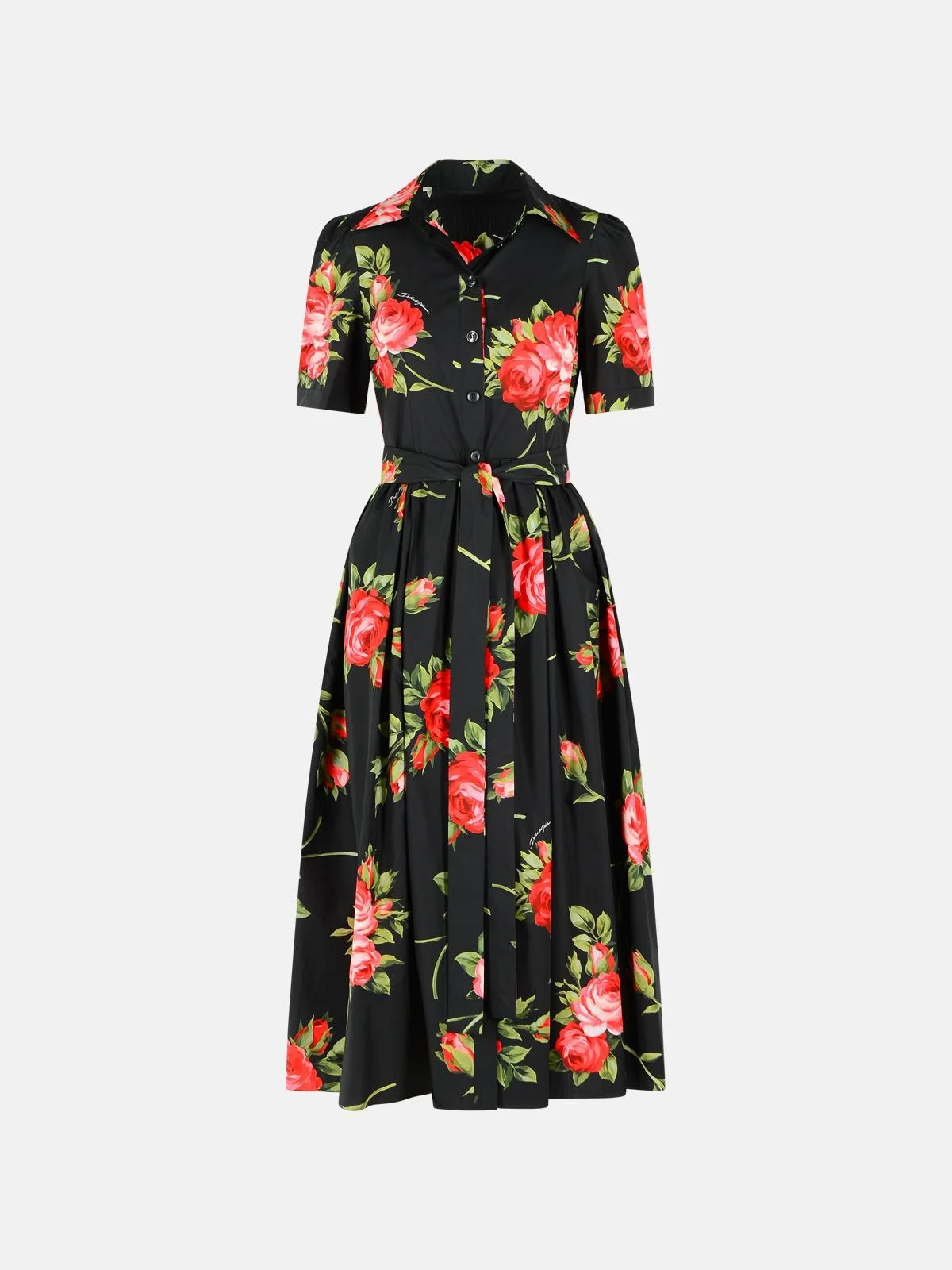Rose bouquet-print poplin shirt dress