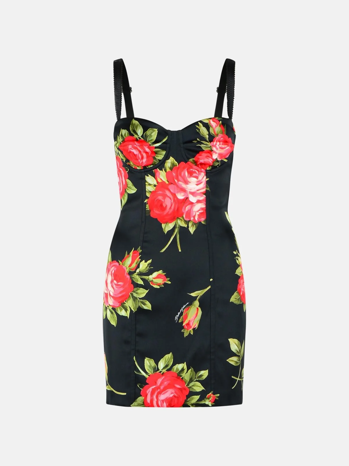 Manufacture code: F6CLMT FSICD HN5ZN Retail code: F6CLMT FSICD HN5ZN Adjustable and slightly elastic shoulder straps, 'Bouquet Rose' pattern, corset top structure, hidden back zip Main: 91% viscose, 5% silk, 4% elastane Made in Italy