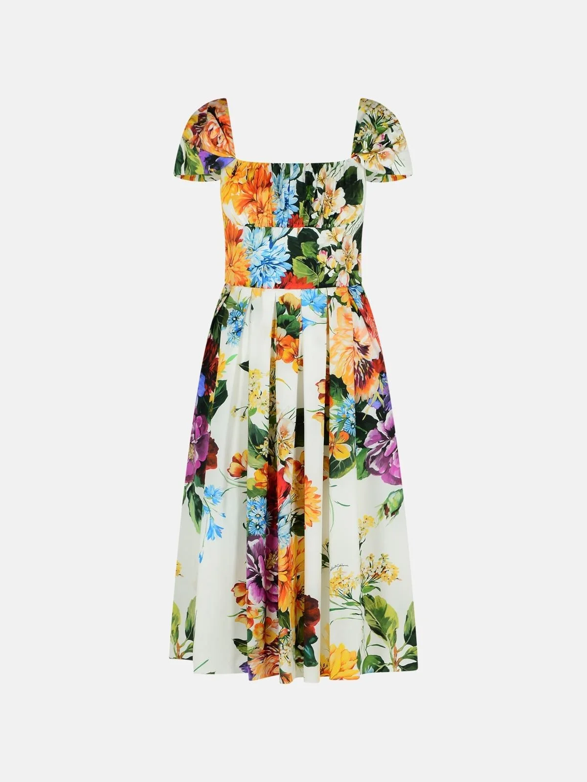 Flower bouquet-print poplin dress