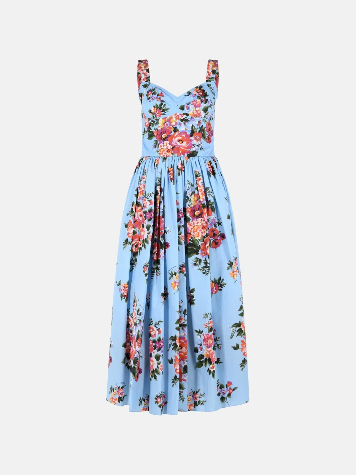 FLORAL DRESS IN LIGHT BLUE COTTON