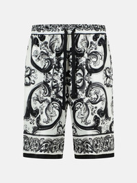 'MAIOLICA' BLACK SILK BERMUDA SHORTS