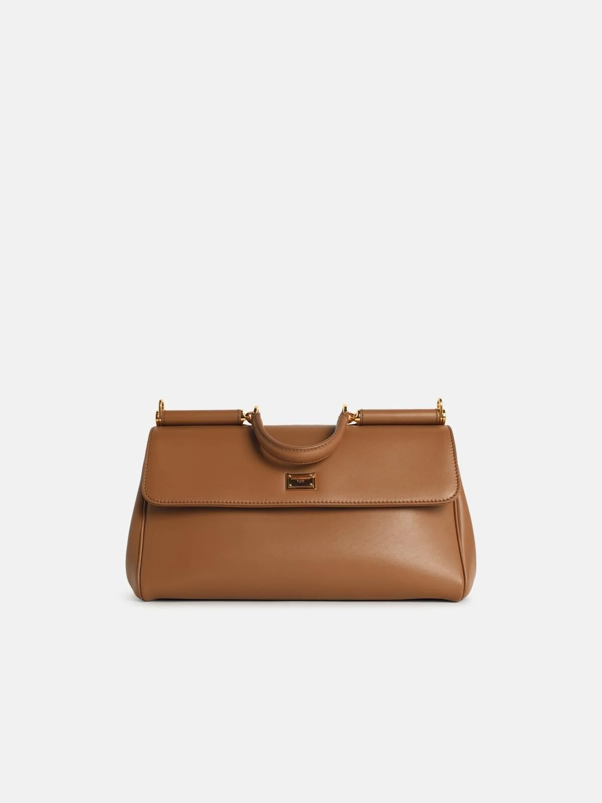 'MY SICILY' CALF LEATHER 'PLONGÉ' CARAMEL HANDBAG