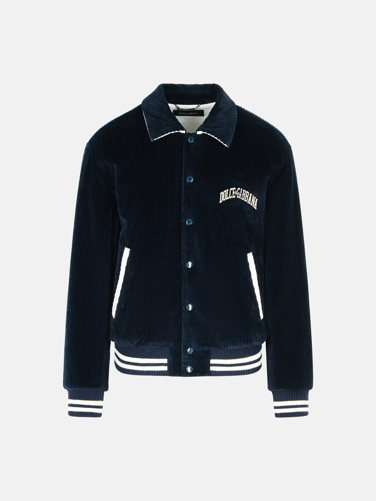 Manufacture code: G9BPXZ FUVLI B0665 Retail code: G9BPXZ FUVLI B0665 Corduroy with contrast edging, pointed collar, snap button closure, contrast logo embroidery on the chest, two side welt pockets, two inner zip pockets, contrast maxi back embroidery, elasticized hem and cuffs, contrast inner lining Main: 96% virgin wool, 4% elastane Made in Italy