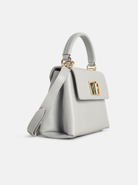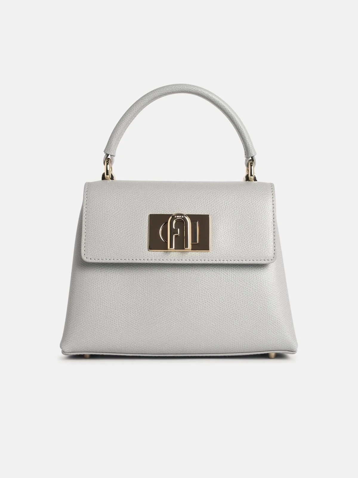 Manufacture code: WB00109 ARE000 CRH00 Retail code: WB00109 ARE000 CRH00 Made of fine hammered leather, fixed top handle, adjustable and removable shoulder strap, twist closure with tongue and the iconic 'Arco Furla' logo, interior bellows construction, one flat pocket, one zip pocket, outer flat pocket, metal feet\n21 x 16 x 8.5 cm Main: 100% calf leather Made in Bulgaria
