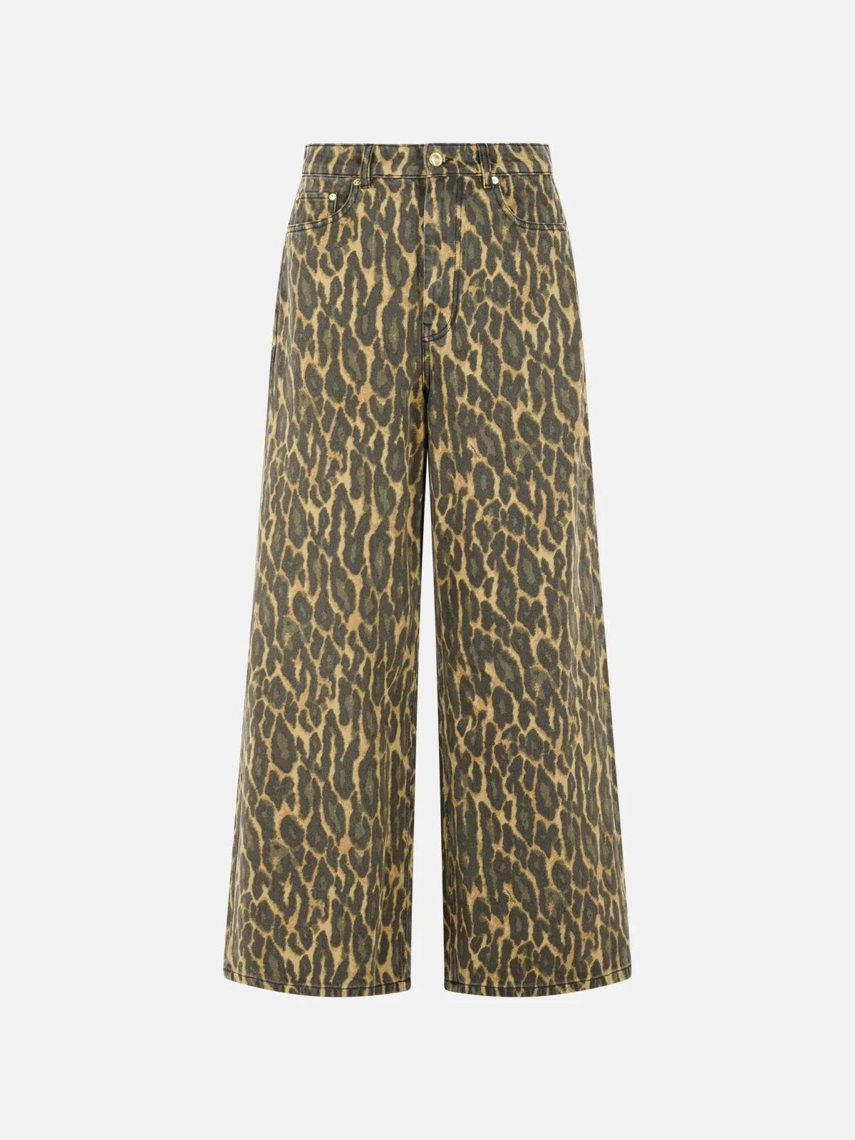 Manufacture code: A1100033 894 Retail code: A1100033 894 Cotton denim pants with wide leg, belt loops, covered zip and button closure, five-pocket style, logo back patch, leopard print Main: 100% cotton Made in Turkey