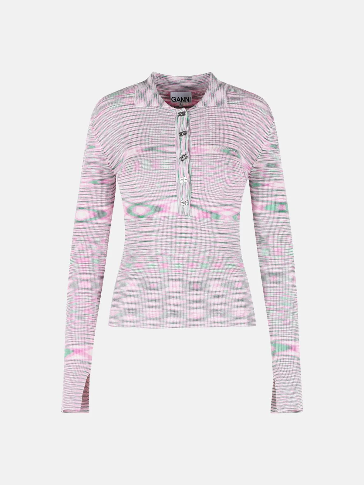 Manufacture code: A1070072 868 Retail code: A1070072 868 Square collar, partial button closure, logo embroidery on the chest, long sleeves, abstract pattern, tight fit silhouette Main: 85% viscose, 15% nylon Made in China