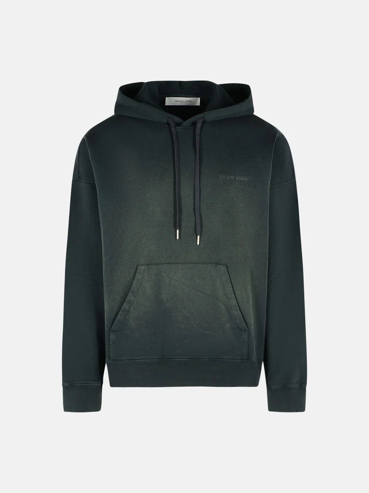 Unisex hooded sweatshirt in black cotton with a bleached effect