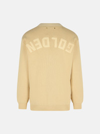 Men’s beige cardigan with 'Golden' lettering on the back