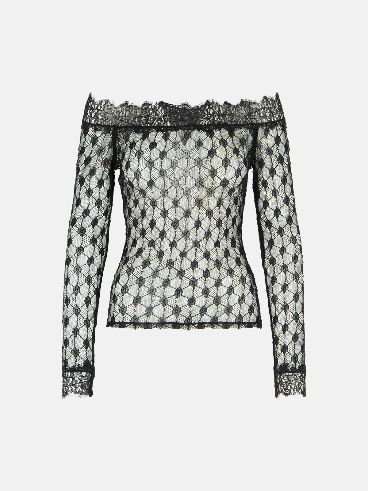 Manufacture code: HT0730FA-C4J06I 01BK Retail code: HT0730FA-C4J06I 01BK Boat neckline, made of floral lace Main: 85% nylon, 15% elastane Made in Portugal