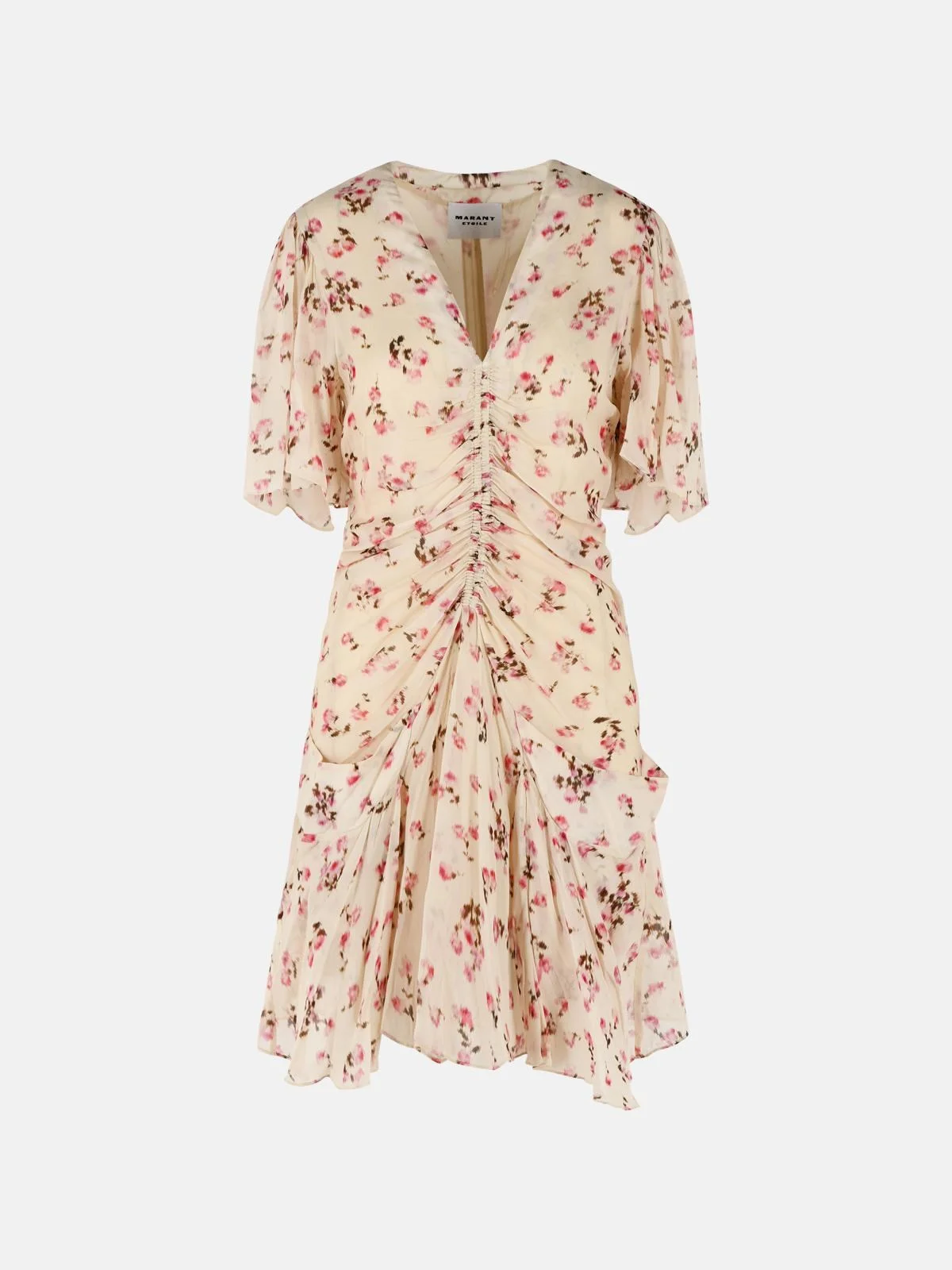 Manufacture code: RO0330FA-D1J08E 90BE Retail code: RO0330FA-D1J08E 90BE V-neck, floral pattern, wide draped sleeves, front elastic insert, invisible side zip, front pouch pockets, draped, lined Main: 100% viscose Made in India