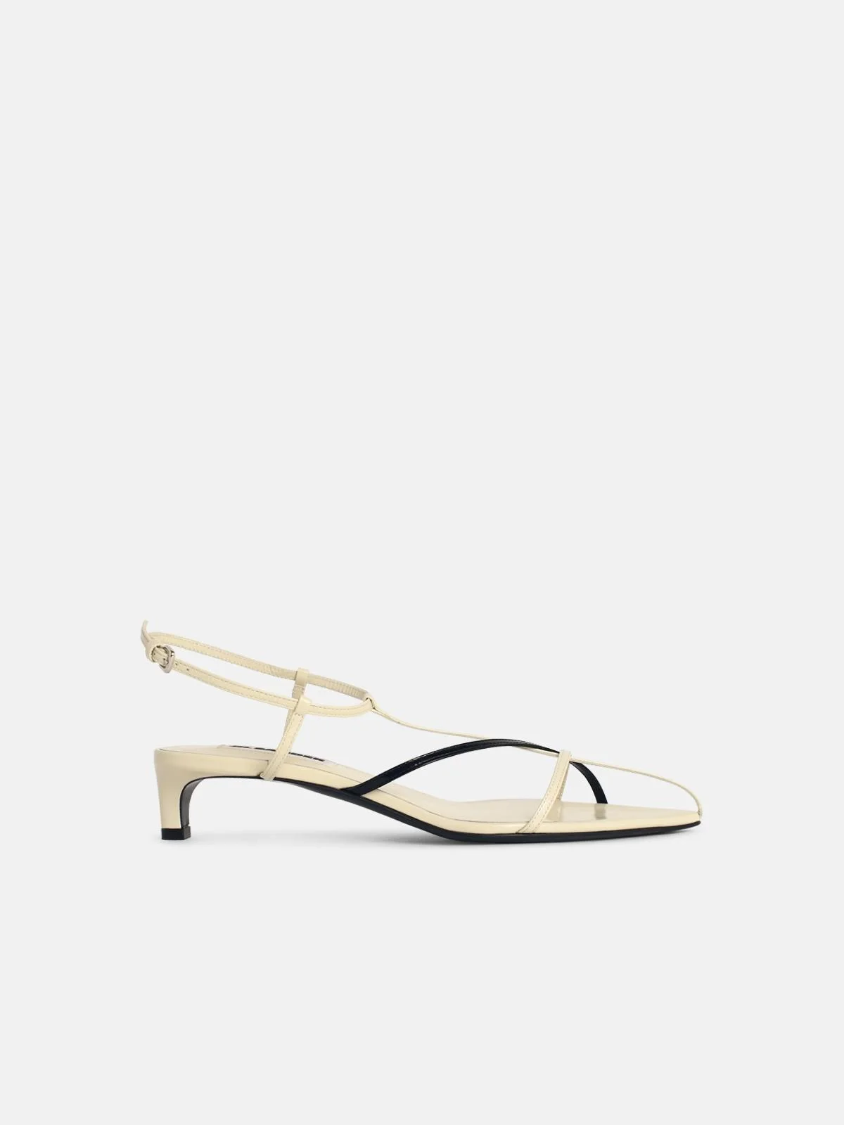 Manufacture code: J15WP0129 P6422 230 Retail code: J15WP0129 P6422 230 Pointed Silhouette, low heel, leather ankle straps with buckle, leather insole and sole, insole with Jil Sander logo\nHeel height 4.5 cm Main: 100% calf leather Made in Italy