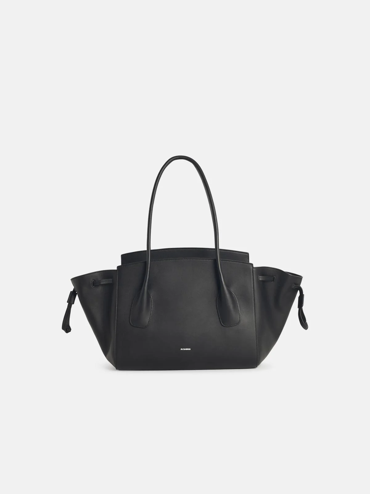 Manufacture code: J08ZH0070 P8374 001 Retail code: J08ZH0070 P8374 001 Two leather top handles, flat inner leather pocket with blind embossed 'Jil Sander' logo, flap closure, side inserts with leather drawstring, canvas lining, embossed Jil Sander logo. Main: 100% calf leather Made in Italy