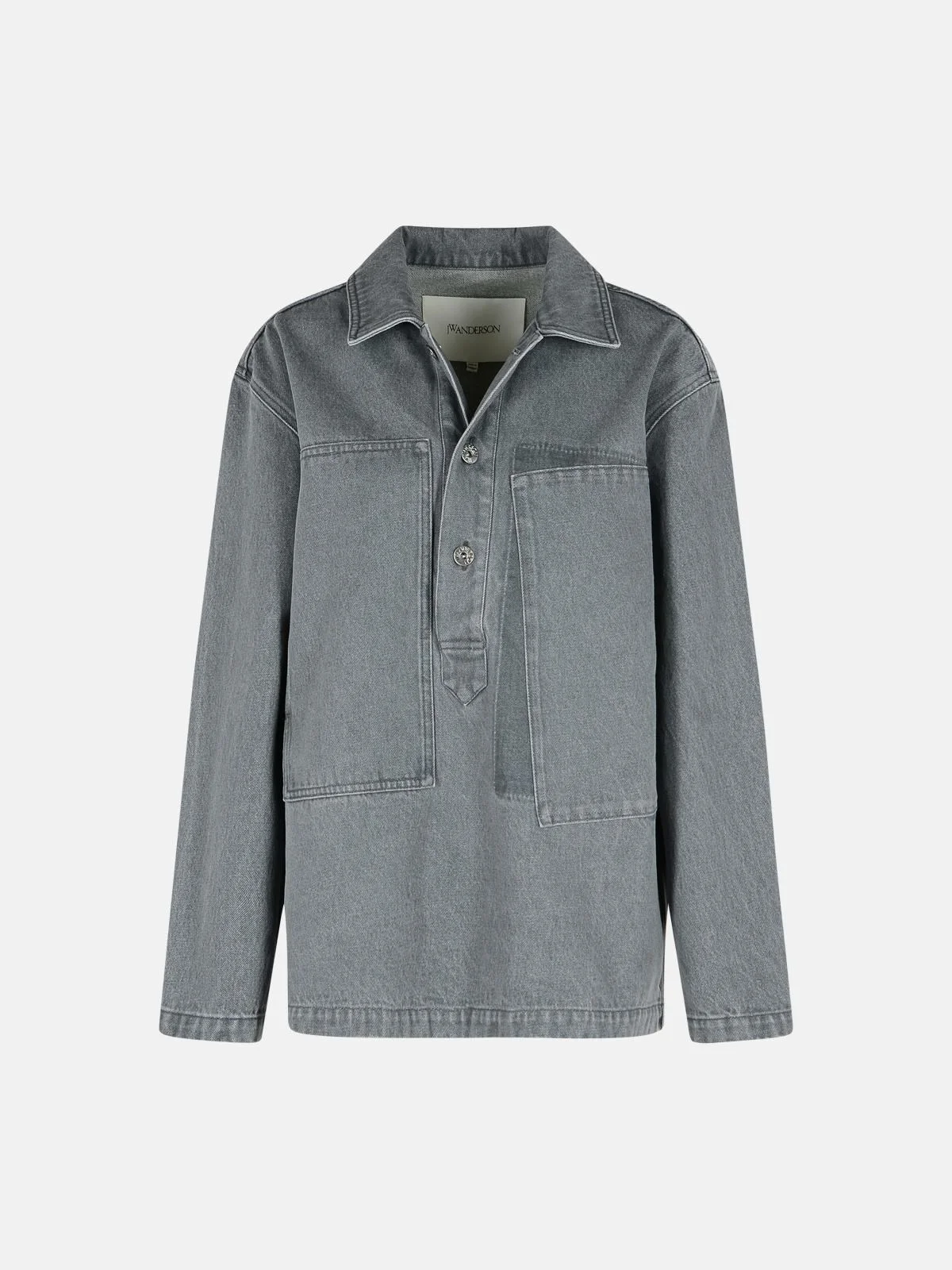 Manufacture code: DS0015 PG1837 906 Retail code: DS0015 PG1837 906 Made of cotton denim, relaxed cut, slanted and asymmetrical patch pockets, tonal stitching, silver buttons, raw leather patch with embossed logo in the center of the back Main: 100% cotton Made in Portugal