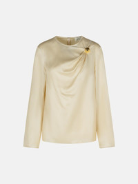 Manufacture code: AZAE IVORY Retail code: AZAE IVORY Made of silk twill, straight silhouette with draped detail along the neckline, metal ornament, crew neck and long flared sleeves Main: 100% silk Made in China
