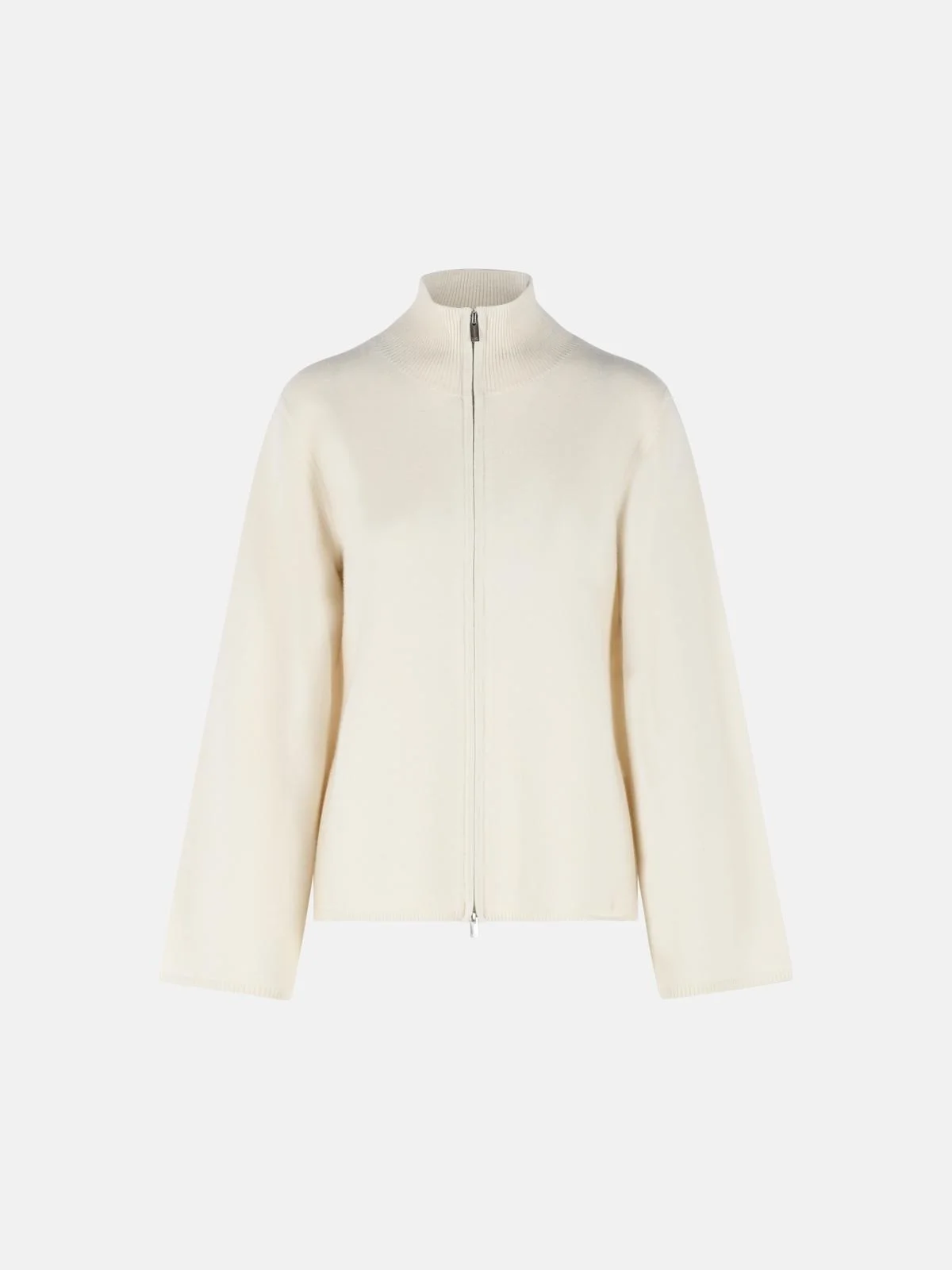 Manufacture code: GABI IVORY Retail code: GABI IVORY Ribbed raised collar, zip closure, wide sleeves, light ribbed edging, tonal logo embroidery on the hem Main: 100% Kashmir Made in China