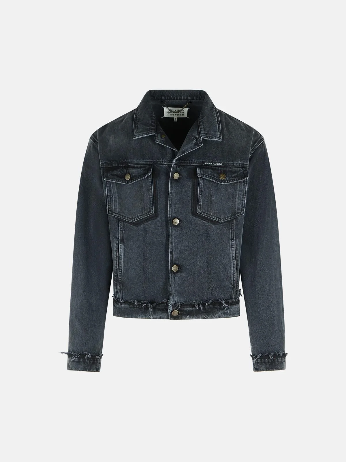 Manufacture code: S50AM0654 S30842 965 Retail code: S50AM0654 S30842 965 Made of cotton denim, washed effect, frayed effect on the hem, classic collar, button closure, top flap and button pockets, vertical slit pockets, iconic white stitching at the back, obttone wrist, adjustable hem with buttons Main: 100% cotton Made in Italy