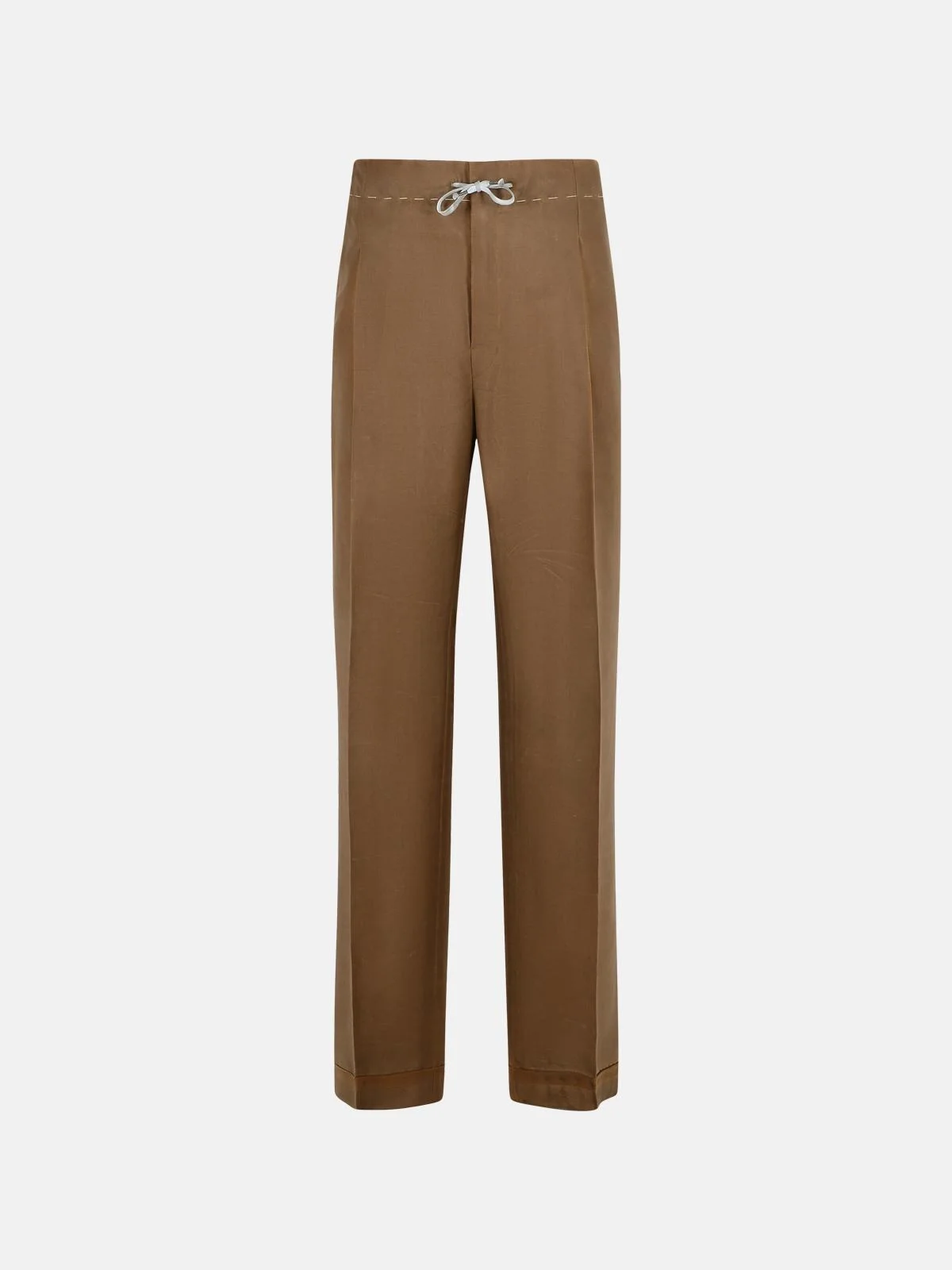 Manufacture code: S50KA0685 M35301 159 Retail code: S50KA0685 M35301 159 Drawstring waistband, hook and button closure at the waist, zipper concealed by flap, structural front pleats, side welt pockets, back welt pockets, one with button, iconic white stitching on the back, finished hem. Main: 60% mohair, 40% wool Made in Italy