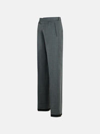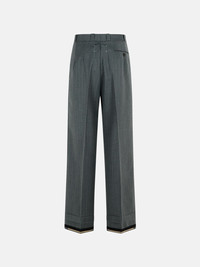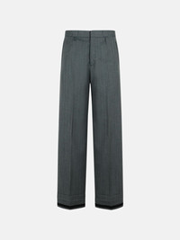 Manufacture code: S51KA0607 M35513 860F Retail code: S51KA0607 M35513 860F Tailored wool blend trousers, straight leg silhouette, ironed pleats on the front, contrast trim detail on the leg bottoms, iconic 'four stitches' on the back, button and hook closure, side welt pockets Main: 50% wool, 50% polyester Made in Italy