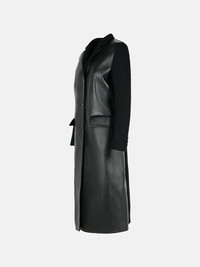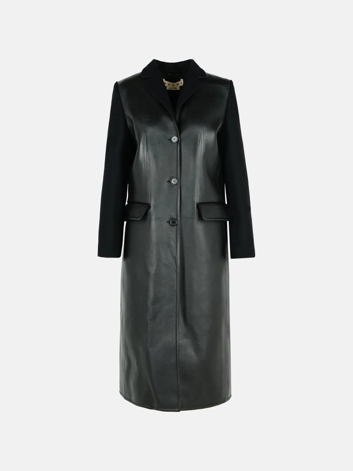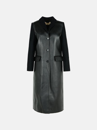 BLACK LEATHER AND VIRGIN WOOL COAT