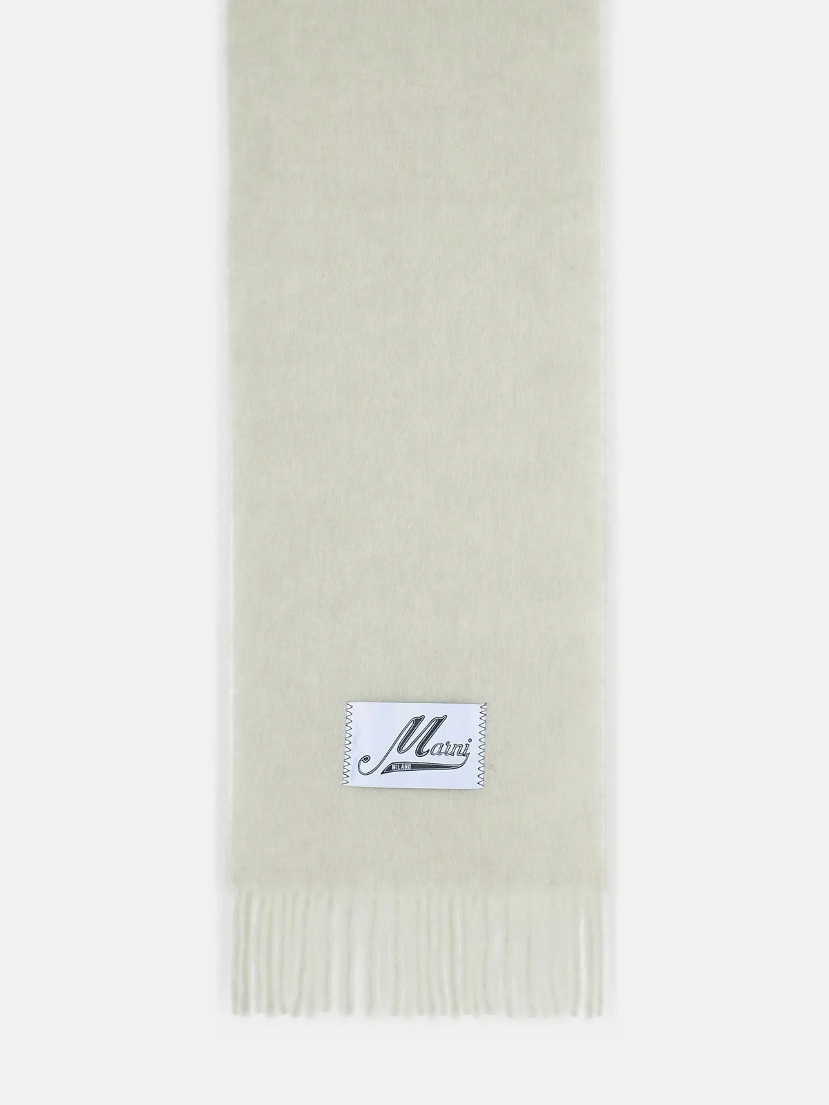 Manufacture code: SCMC0059Y0 UTW918 00N15 Retail code: SCMC0059Y0 UTW918 00N15 Made of brushed alpaca, fringed hem, maxi satin label with italic 'Marni' logo \n196 x 35 cm Main: 80% virgin wool, 20% nylon Made in Italy