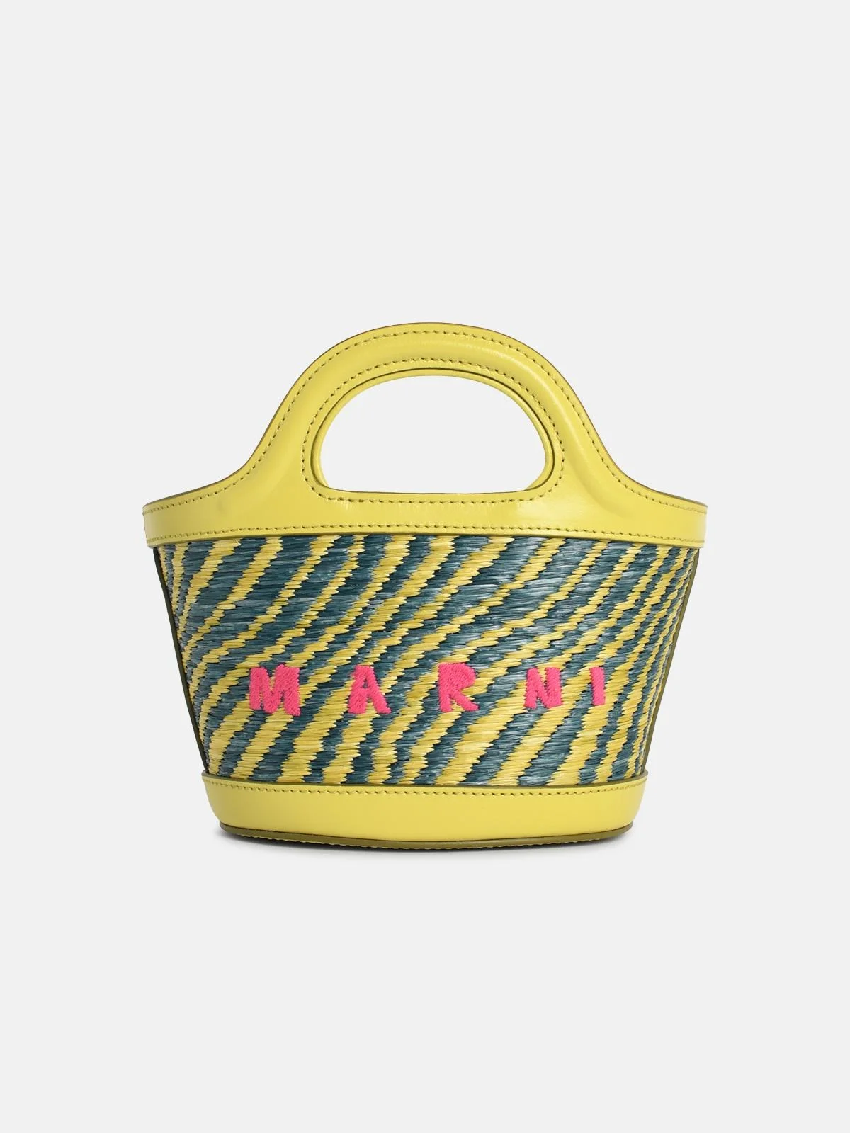 MICRO 'TROPICALIA' BAG IN GREEN LEATHER AND RAFFIA-EFFECT FABRIC