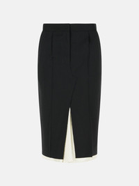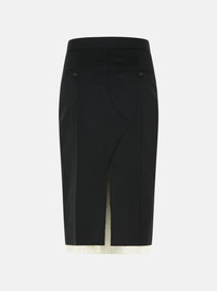 BLACK WOOL MIDI SKIRT WITH VISIBLE LINING