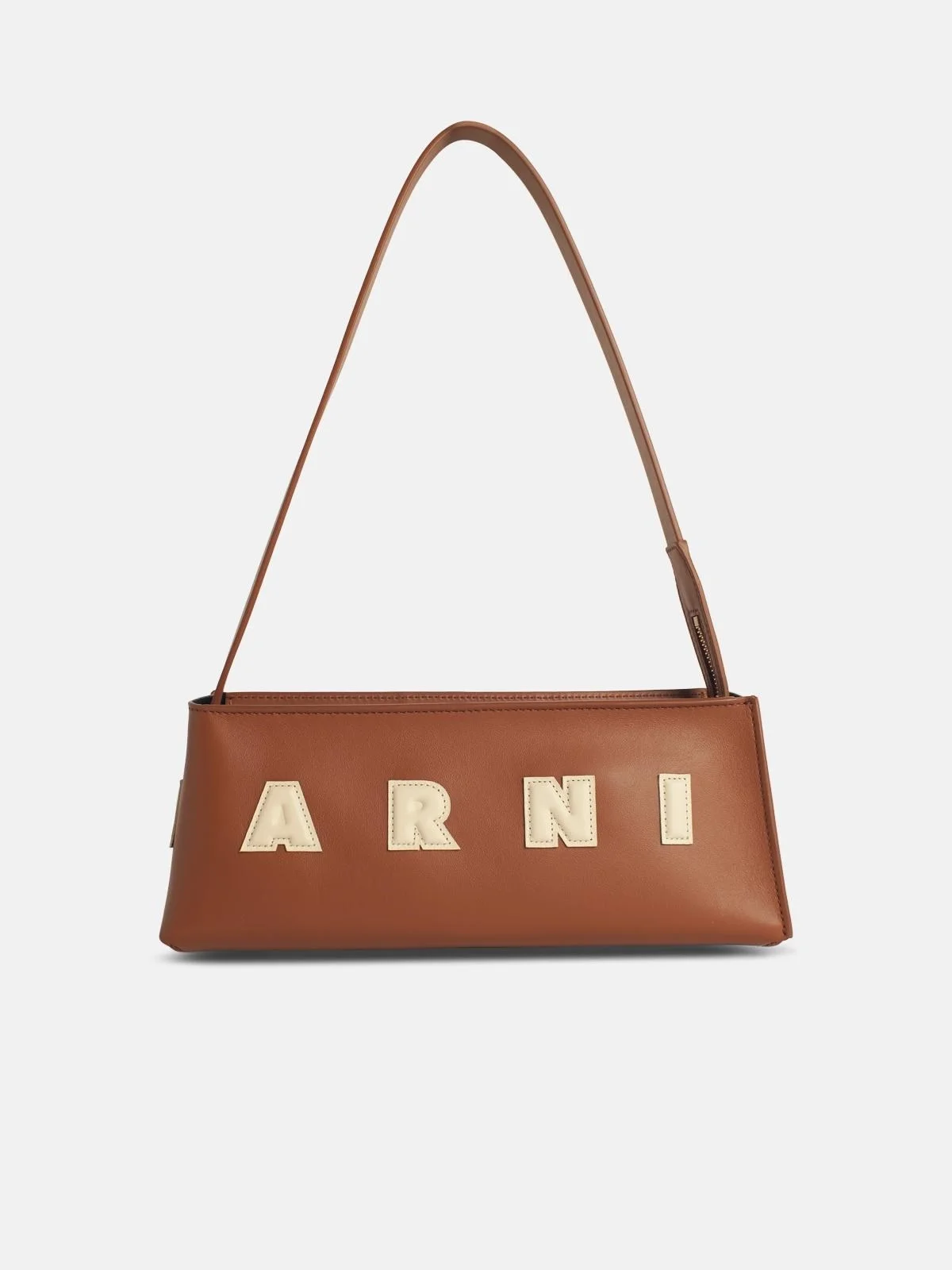 Manufacture code: SBMP0248U0 P6483 ZO722 Retail code: SBMP0248U0 P6483 ZO722 Made of smooth calf leather, compact baguette design with double handle, embossed 'Marni' lettering in contrasting color, seamless construction with suede lining\n28 x 11.5 x 9.5 cm Main: 100% calf leather Made in Italy