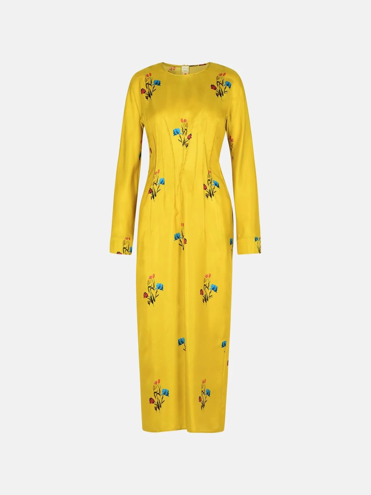 Manufacture code: ABMA1444A0 UTSG37 TUV42 Retail code: ABMA1444A0 UTSG37 TUV42 Round neckline, floral print pattern, structural stitching at the waist, back invisible zip closure, hook and button, finished cuff, back slit hem Main: 100% silk Made in Italy