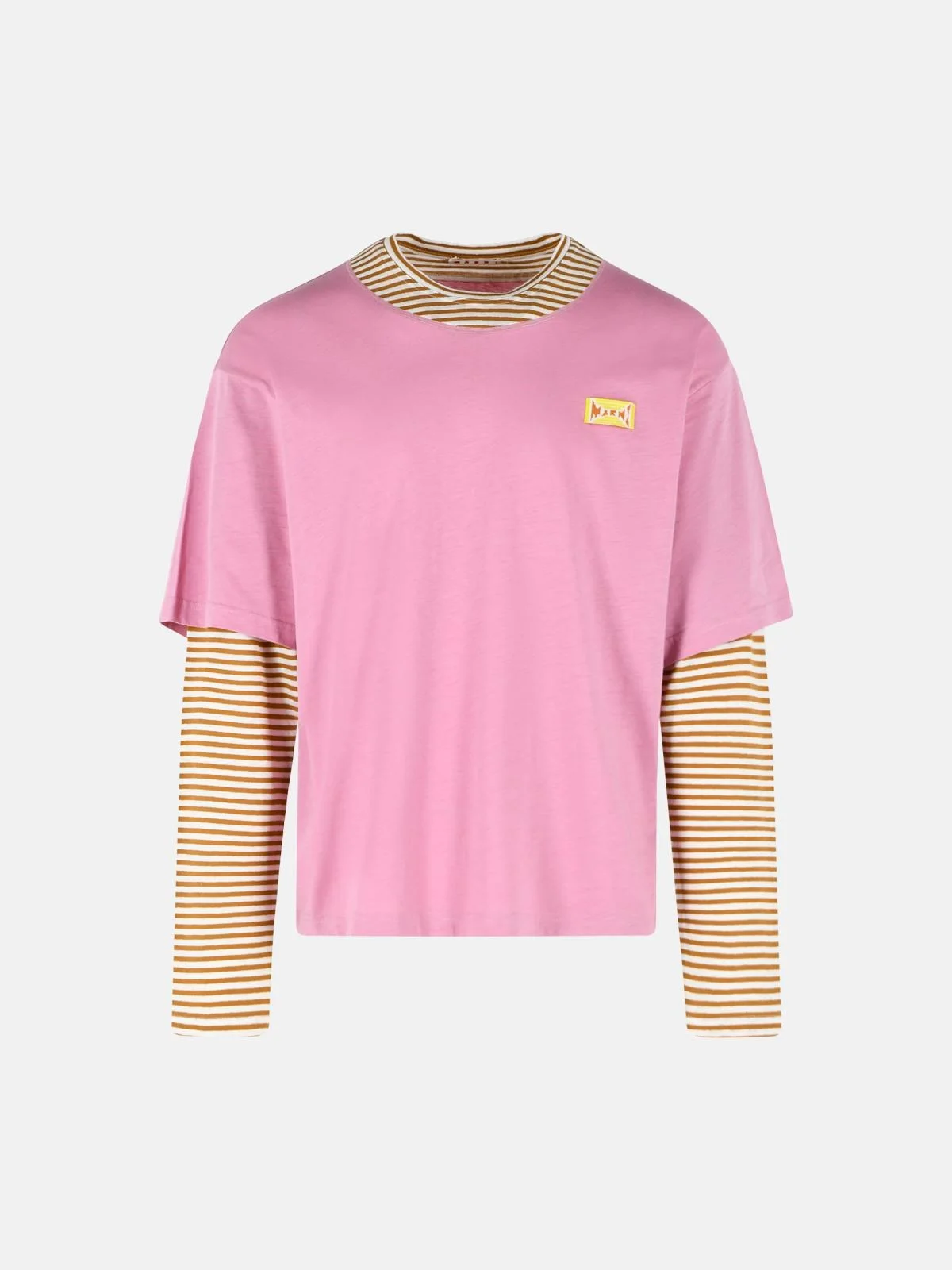 PINK AND MUSTARD LAYERED COTTON T-SHIRT