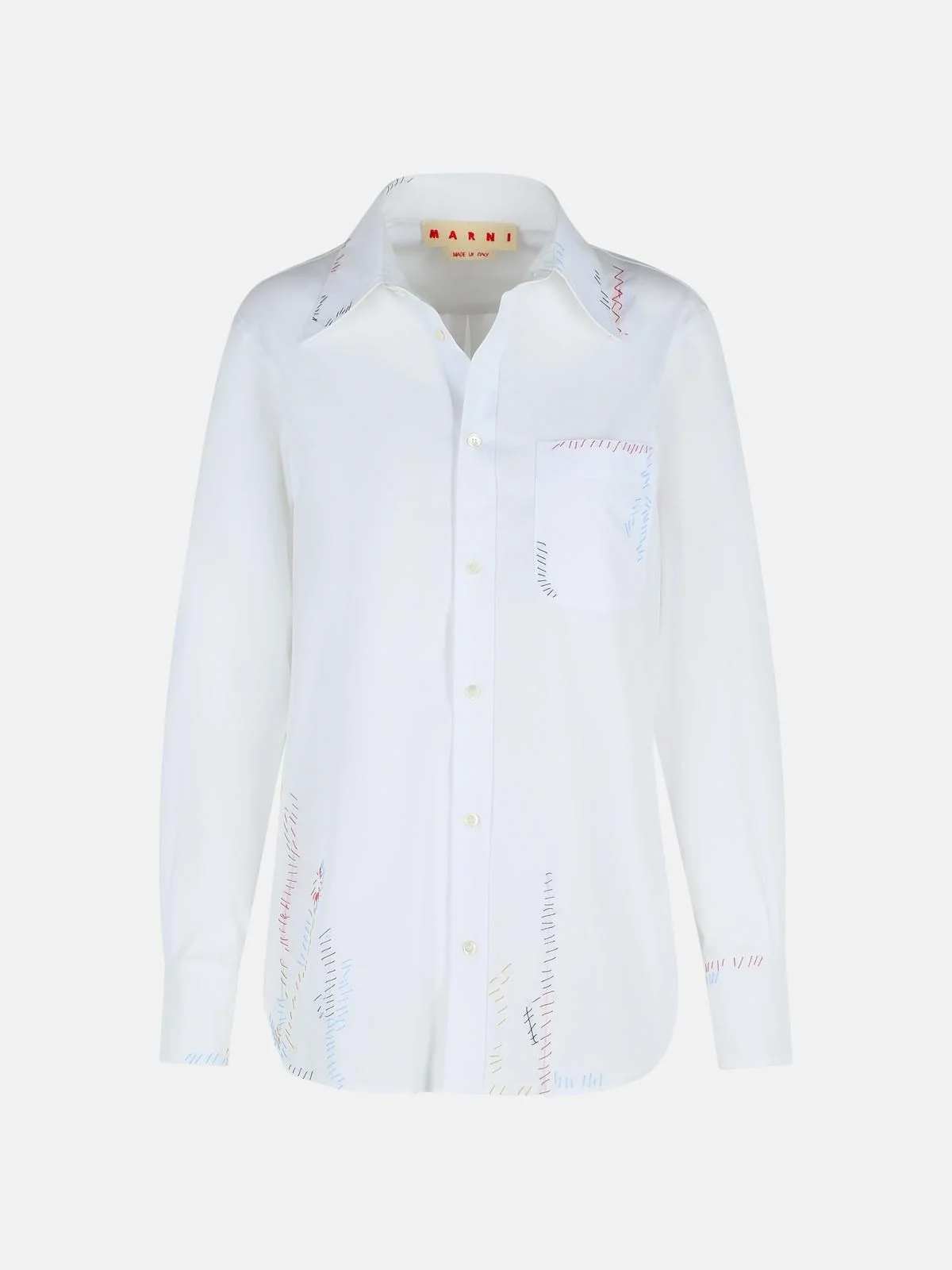 Manufacture code: CAMA0103S9 TCY67 00W01 Retail code: CAMA0103S9 TCY67 00W01 Made of organic cotton poplin, decorated with handmade 'Marni Mending' embroidery and floral details, chest pocket and buttoned cuffs, regular fit with a back crease and rounded hem, front button closure Main: 100% cotton Made in Italy