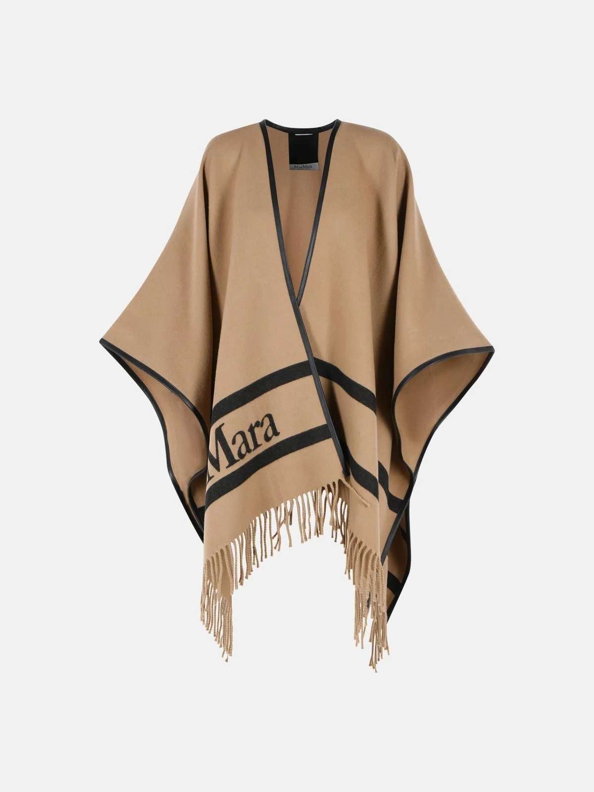 Manufacture code: 2614541051 001 Retail code: 2614541051 001 Pure wool yarn poncho, jacquard design with 'Max Mara' logo on the bottom, fringed pattern on the bottom \ 130 x 180 cm Main: 100% wool Made in Italy
