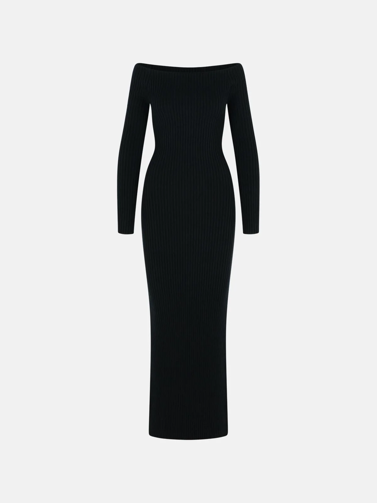 Manufacture code: 2521326203 007 Retail code: 2521326203 007 Fitted dress in stretch wool and cachemire yarn, straight neckline with bare shoulders, long sleeves, unlined Main: 66% wool, 28% cashmere, 5% nylon, 1% elastane Made in Italy