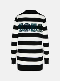 Manufacture code: 2521346031 007 Retail code: 2521346031 007 Black and white contrast horizontal stripe pattern, V-neck, button closure, front pockets with ribbed trim, maxi embossed velvet '1951' lettering on the back, ribbed hem and cuffs, regular fit Main: 100% virgin wool Made in Italy
