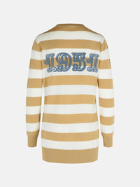 Manufacture code: 2521346031 008 Retail code: 2521346031 008 Striped thin pure wool yarn sweater, V-neck, button closure, front patch pockets, embossed '1951 lettering. Main: 100% virgin wool Made in Italy