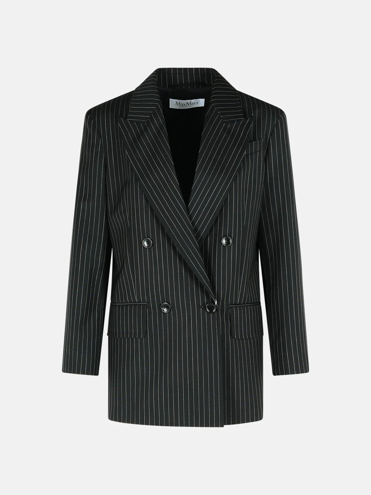 'MATTIA' BLACK WHITE PINSTRIPED VIRGIN WOOL BLAZER